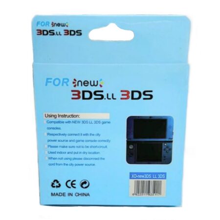 El cargador Nintendo 3DS es un adaptador de corriente específicamente diseñado para recargar la batería de la consola 3DS. Eta conformado por un pequeño bloque rectangular con dos puntas que se enchufa en un tomacorriente estándar, el otro extremo del adaptador tiene un conectorcuadrado que encaja en la Nintendo 3DS.